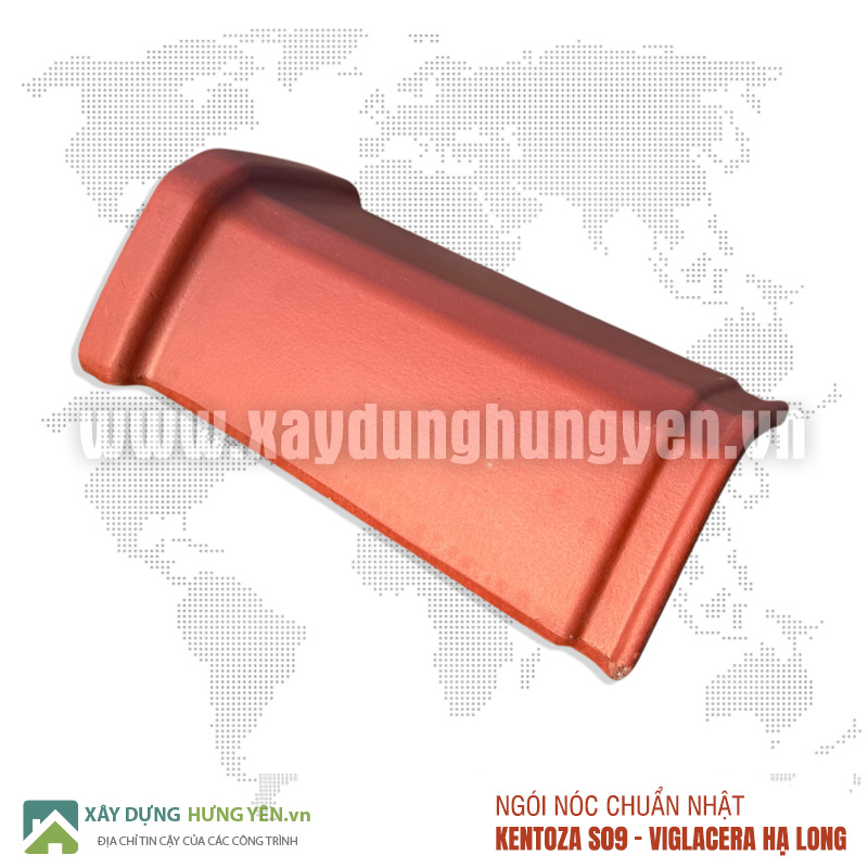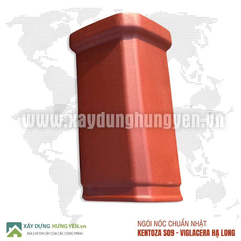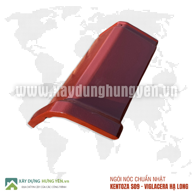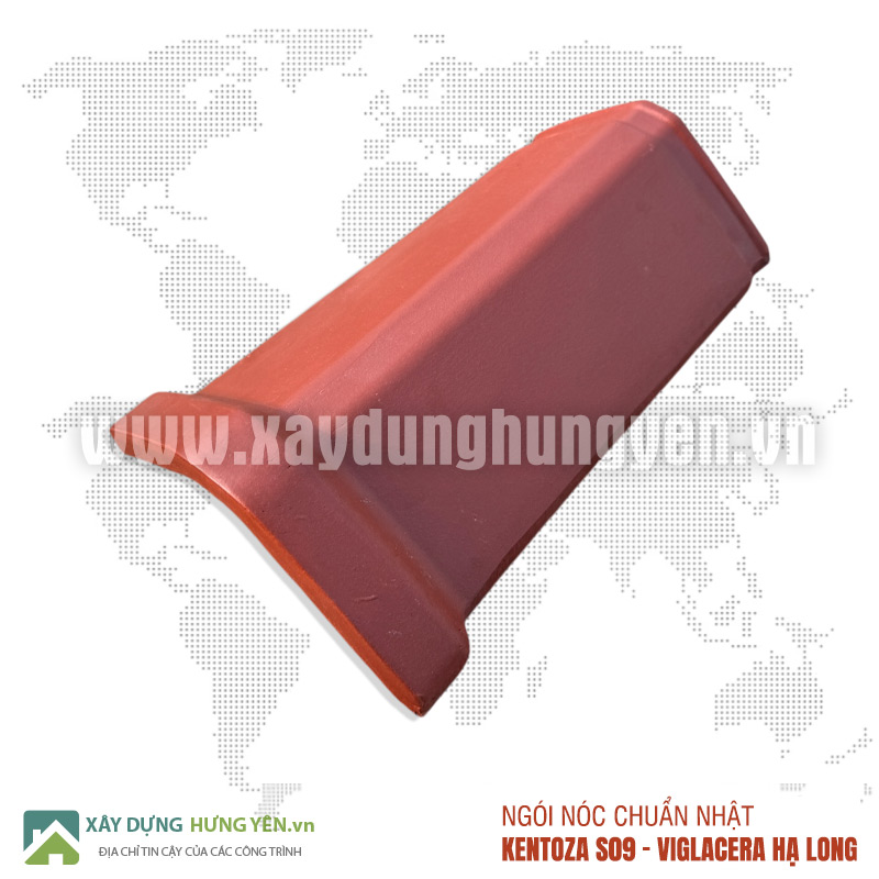 Ngói nóc tráng men đỏ Kentoza S09 là dòng phụ kiện ngói cao cấp, đóng vai trò quan trọng trong việc hoàn thiện và bảo vệ phần đỉnh mái. Sản phẩm được sản xuất bởi Viglacera Hạ Long, ứng dụng công nghệ gốm đất nung tráng men chuẩn Nhật, mang lại độ bền, tính thẩm mỹ và giá trị lâu dài cho các công trình kiến trúc mái Nhật hiện đại.